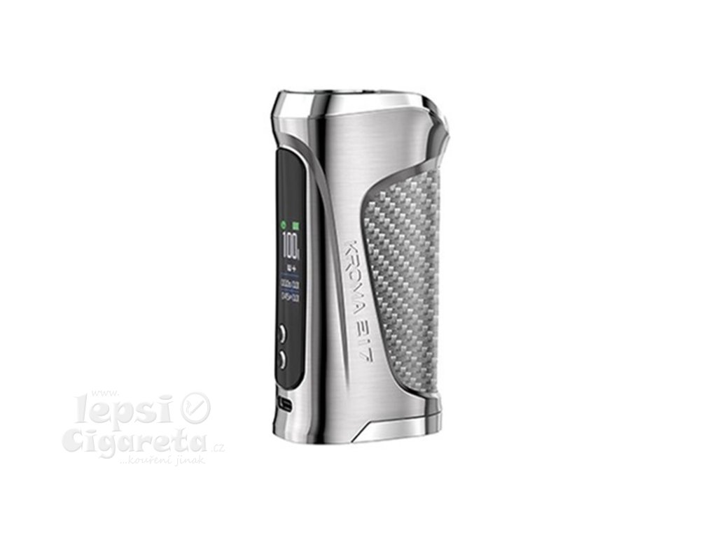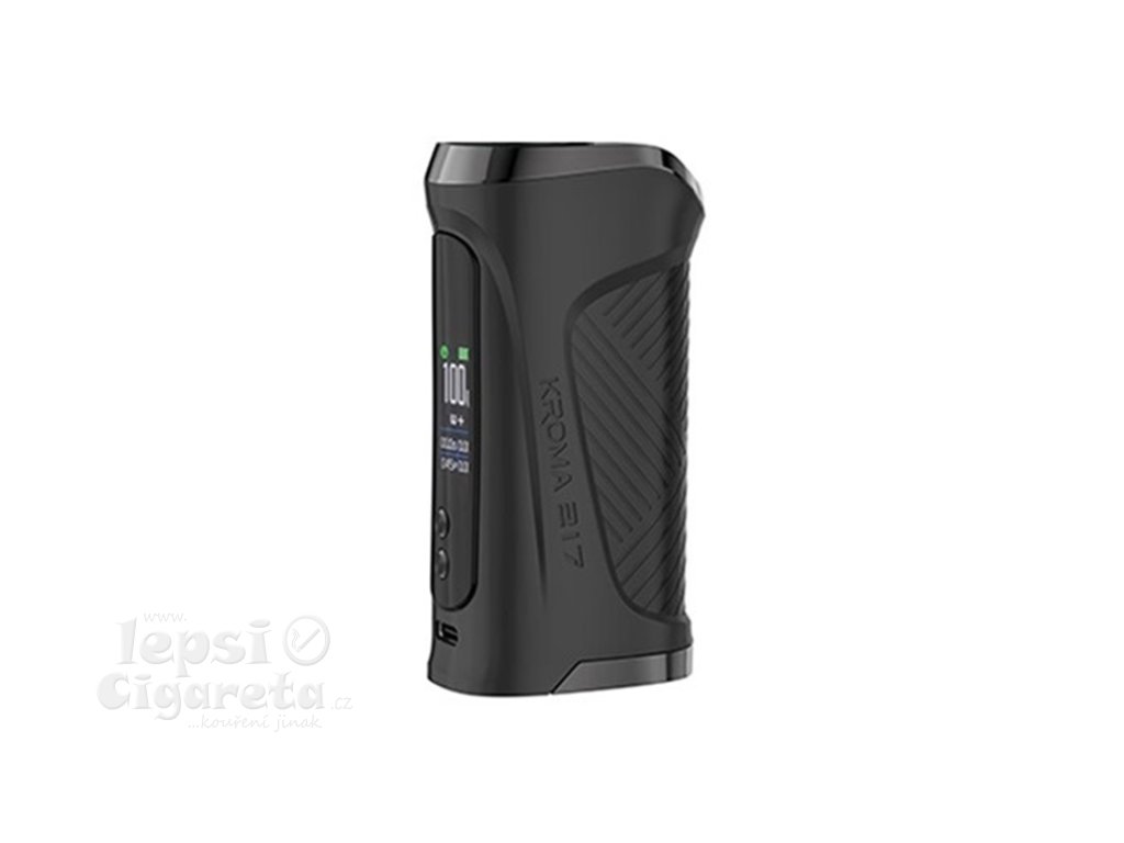Ovládání Kromy je velmi jednoduché a přehledné. Grip je vybaven velkým displejem a tlačítky. Na displeji naleznete všechny důležité informace jako je stav baterie, odpor použité žhavící hlavy nebo výstupní napětí. Menu je velmi intuitivní, snadno zde navolíte jeden ze tří dostupných režimů. Nejoblíbenější je klasické nastavení výkonu. Dle použité baterie Kroma 217 nabídne různý maximální výkon. S baterií 18650 to je výkon až 80W, s baterime 20700 a 21700 až 100W. Dalším možným režimem je "Coil+", který vylepšuje zásobování žhavící hlavy e-liquidem. Třetí dostupný reřim je "Refresh", kdy si manuálně připravíte žhavící hlavu mezi potahy tak, abyste dosáhli lepšího zásobování náplní, užili si lepší chuť a v neposlední řadě prodloužili život žhavící hlavy.